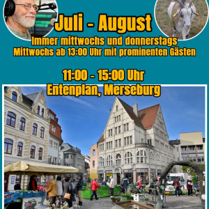 Im Juli und August durften wir wieder live aus Merseburg senden – direkt vom Entenplan. Ein riesiges Dankeschön an die Stadt Merseburg für die großartige Unterstützung!