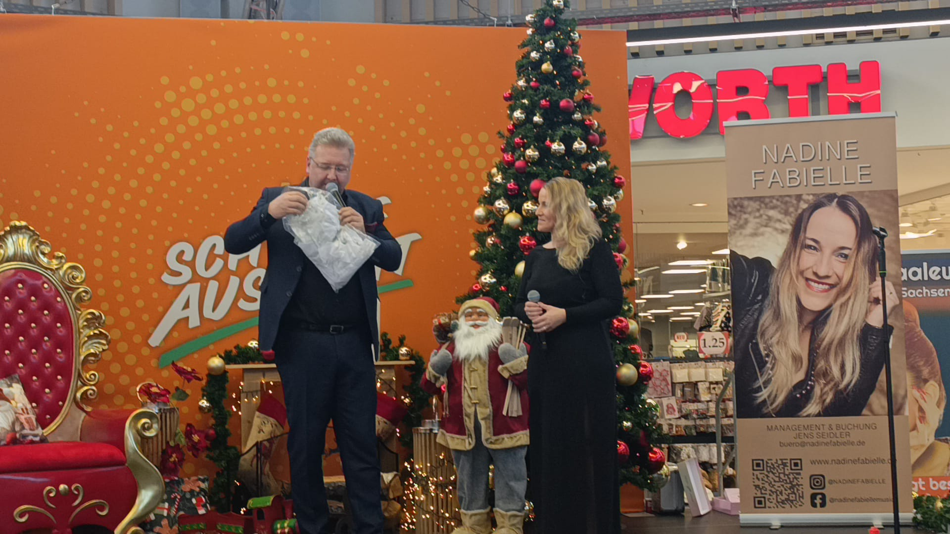 Heute hat Nadin Fabiele das Einkaufscenter „Schöne Aussicht“ in eine Bühne voller Emotionen, Gänsehaut und guter Laune verwandelt.