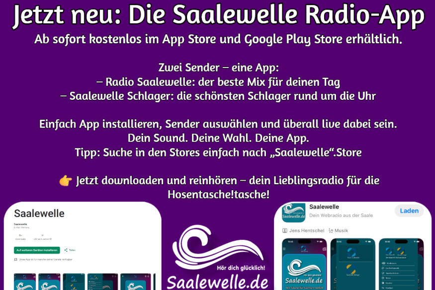 Weißenfels 17.05.2025 – Lange wurde sie angekündigt – jetzt ist es endlich soweit!Die Saalewelle bringt ihr Radioprogramm auf eine neue Stufe der Mobilität: Ab sofort ist die offizielle Saalewelle App für iOS und Android kostenlos in den App-Stores verfügbar. Hörerinnen und Hörer haben damit nicht nur ihren Lieblingssender immer griffbereit, sondern erhalten eine Vielzahl nützlicher Funktionen – kompakt in einer App vereint.