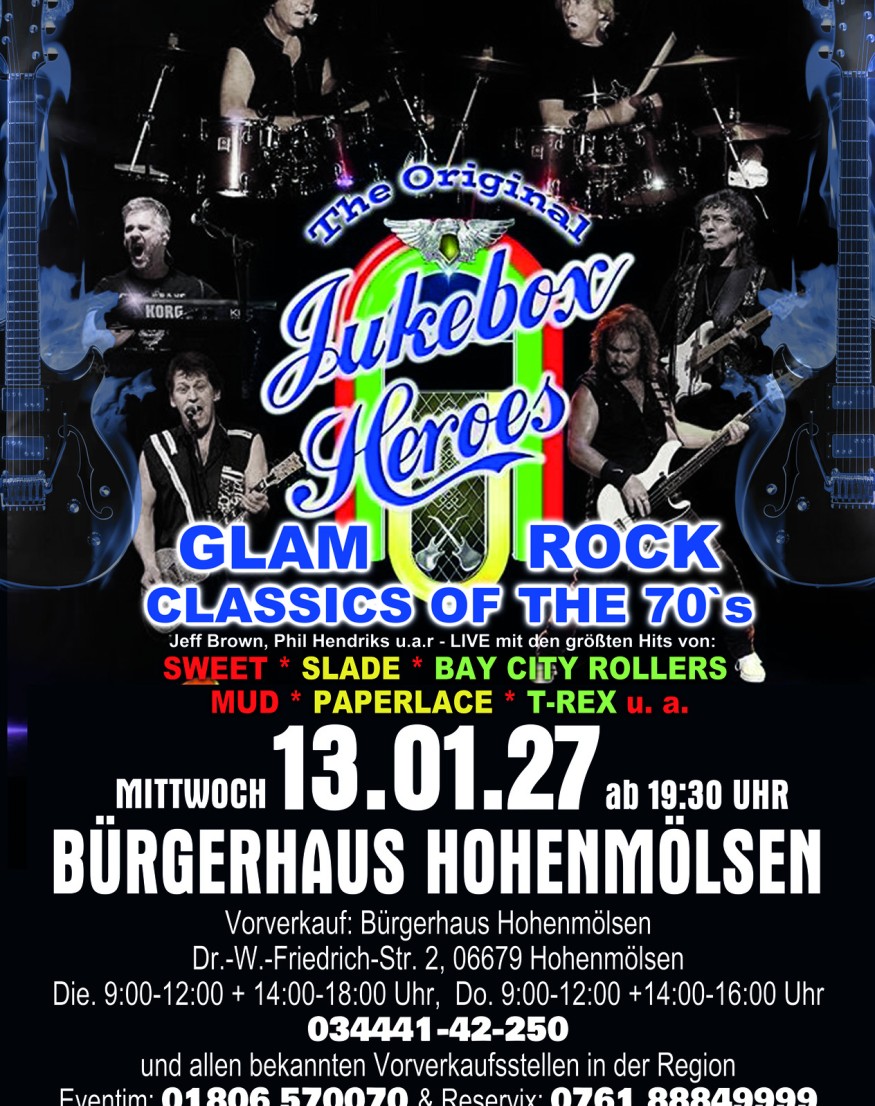 Passend benannt sind die Original Jukebox Heroes ein spektakuläres Live-Erlebnis, das Sie zurück in die glitzernde Zeit des Glam Rock katapultiert.