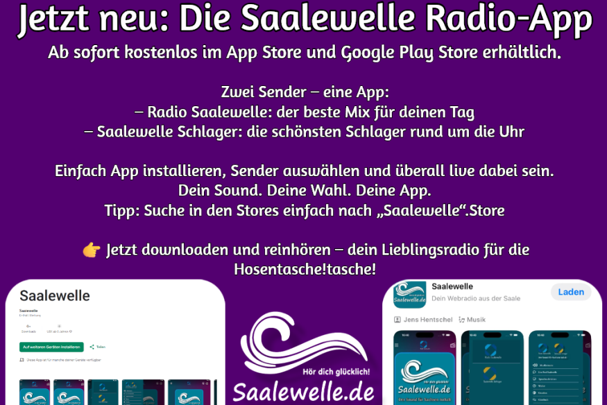 Weißenfels 17.05.2025 – Lange wurde sie angekündigt – jetzt ist es endlich soweit!Die Saalewelle bringt ihr Radioprogramm auf eine neue Stufe der Mobilität: Ab sofort ist die offizielle Saalewelle App für iOS und Android kostenlos in den App-Stores verfügbar. Hörerinnen und Hörer haben damit nicht nur ihren Lieblingssender immer griffbereit, sondern erhalten eine Vielzahl nützlicher Funktionen – kompakt in einer App vereint.